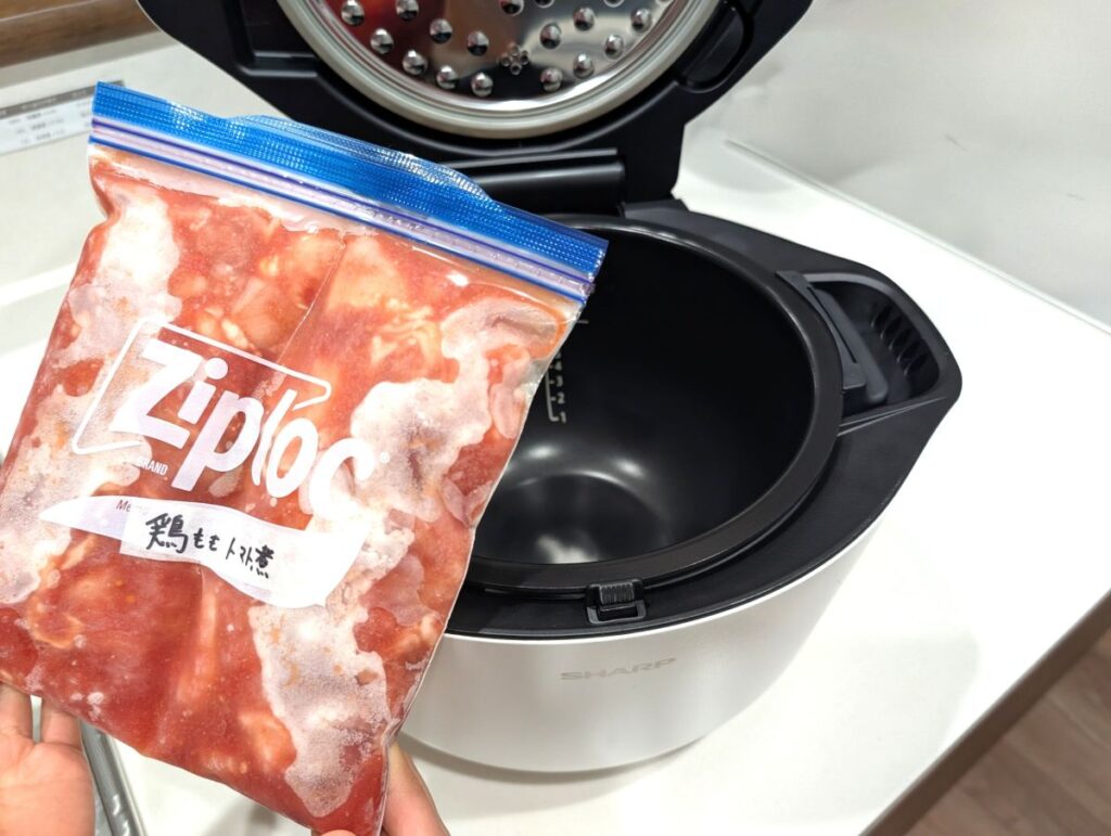 下味冷凍したお肉が、カチコチで内鍋の底に入らない(浮いてしまう)…